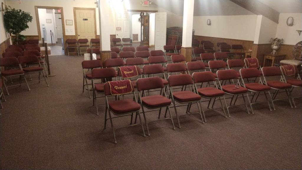 We have additional parking behind the funeral home that can park approximately 65 cars in all.